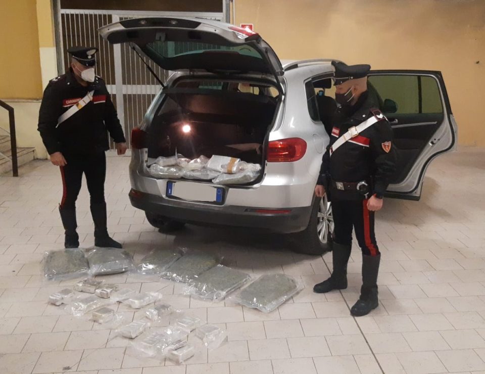 I Carabinieri della Compagnia di Anzio hanno effettuato numerosi controlli sul territorio di Anzio e Nettuno che hanno portato all’arresto di 3 persone, tutti italiani di 50, 47 e 20anni, con l’accusa di detenzione ai fini di spaccio di ingenti quantitativi di sostanze stupefacenti. Nel corso di un controllo, i Carabinieri hanno effettuato una perquisizione all’interno dell’abitazione di padre e figlio, rispettivamente di 47 e 20 anni, dove sono stati rinvenuti, nascosti in vari punti, e sequestrati, un chilo di cocaina e 80 grammi di hashish già confezionati e pronti per essere spacciati, nonché materiale vario per pesare e confezionare la droga. I due dopo l’arresto sono stati condotti in carcere, come da indicazioni della Procura della Repubblica di Velletri. I successivi controlli a tappeto sul territorio hanno portato anche ad un altro importante risultato operativo. Durante il controllo di un veicolo in transito in via delle Cinque Miglia, la pattuglia ha notato una particolare anomalia del bagagliaio e quindi, insospettita dalla strana forma, i militari hanno deciso di procedere ad un controllo più approfondito. All’interno del vano posteriore era stato installato un finto pannello che serviva a nascondere un doppio fondo il cui accesso era consentito solo tramite un meccanismo elettromeccanico dedicato. Aprendolo i militari hanno scoperto che all’interno erano stati occultati ben 20 kg di sostanze stupefacenti fra cocaina, marijuana e hashish, tutte suddivise in confezioni di oltre mezzo chilo l’una. L’uomo, un italiano incensurato di 50 anni, proprietario del mezzo, è stato arrestato e anche per lui si sono aperte le porte del carcere di Velletri, in accordo con l’Autorità Giudiziaria di Velletri.