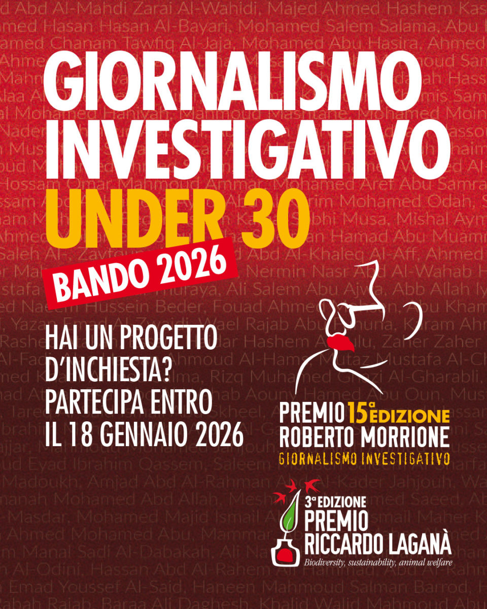 E’ aperto il bando della 15′ edizione del Premio Roberto Morrione per il giornalismo investigativo e della 3′ edizione del Premio Riccardo Laganà Biodiversity, Sustainability, Animal Welfare (biodiversità, sostenibilità e benessere animale).