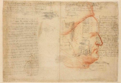 Ed è qui che arriva Leonardo da Vinci, che nel suo taccuino personale, nel quale annotava gli elementi che più stimolavano la sua genialità e curiosità smodata riporta in un foglio disegnato a sanguigna il volto di Federico da Montefeltro dal lato nascosto, là dove nessuno fino ad allora aveva osato rappresentare, nella quale si evince la mancanza dell’occhio destro.