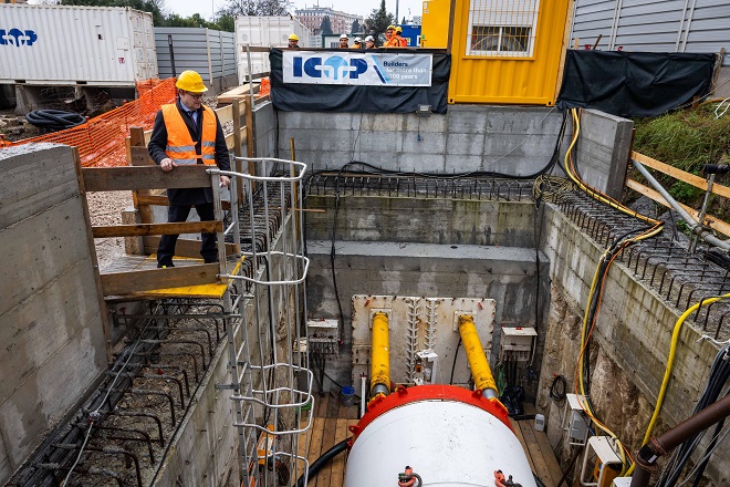 Da oggi inizieranno i lavori per lo scavo del primo tratto con la talpa (alta 3 metri) per una lunghezza 260 metri (microtunnelling) fino allo stadio del tennis, dove si trova la prima delle due camere di estrazione che consentirà il riutilizzo della talpa nella tratta successiva lunga circa 500 metri.