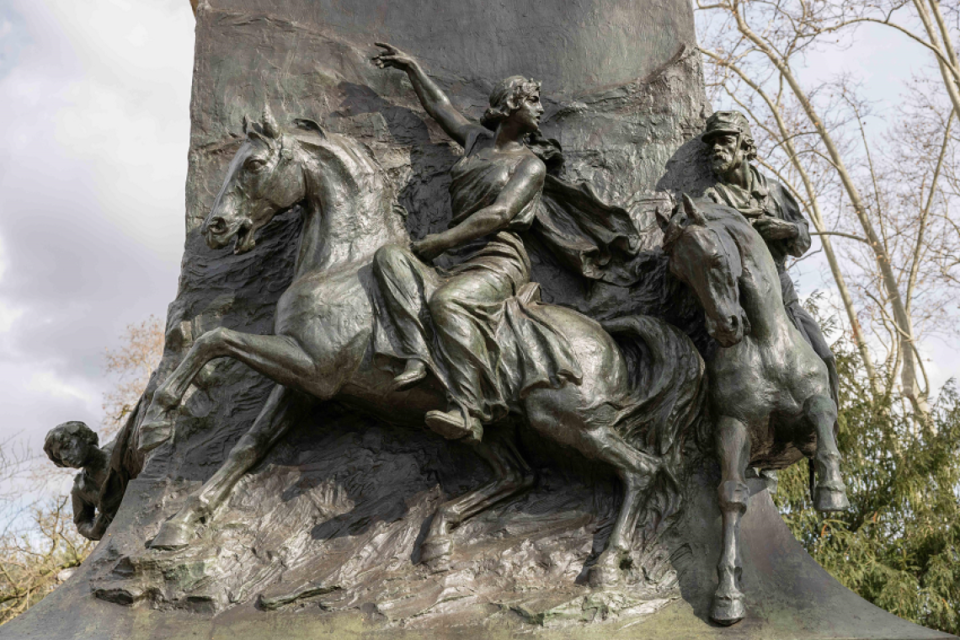 Rutelli si mise al lavoro immaginando l’Eroina in sella a un destriero in corsa con la pistola in pugno, come novella Amazzone.