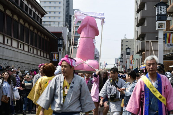 La prima domenica di aprile, infatti, la città si riempie di turisti, devoti e curiosi che accorrono per assistere alla più improbabile processione religiosa dell’Asia orientale: tre santuari portatili che ospitano altrettanti simboli fallici, trasportati con la stessa solennità con cui altrove si porta la statua del patrono.