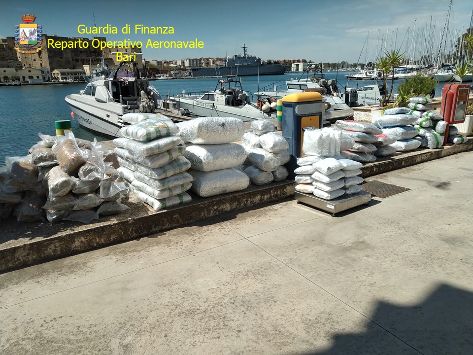 Il dispositivo di sorveglianza aeronavale delle Fiamme Gialle pugliesi, che pattuglia senza sosta le acque del basso Adriatico e del Mar Ionio, ha portato a termine un’altra importante operazione a contrasto del traffico internazionale di sostanze stupefacenti attraverso la stabile collaborazione con le autorità di polizia Albanesi ed il Servizio di Cooperazione Internazionale di Polizia. In particolare, i mezzi aerei e navali della Guardia di Finanza in forza presso il Reparto Operativo Aeronavale di Bari, il Gruppo Aeronavale di Taranto ed il Gruppo di Esplorazione Aeromarittima di Pratica di Mare, in collaborazione con il Comando Provinciale del Corpo di Lecce, intercettavano in acque internazionali, a circa 13 miglia dalle coste albanesi, una imbarcazione intenta a caricare numerosi involucri da tre piccoli natanti. Il continuo coordinamento tra Sale Operative e mezzi aeronavali della Fiamme Gialle ha consentito il fermo di tre natanti in territorio albanese, a cura del Nucleo di Frontiera Marittima della Guardia di Finanza di Durazzo e l’abbordaggio dell’imbarcazione carica di sostanze stupefacenti, al traverso di Santa Maria di Leuca. Nel corso delle operazioni in mare sono intervenuti i seguenti mezzi aeronavali della Guardia di Finanza: un aereo ATR 72 del Gruppo di Esplorazione Aeromarittima (G.E.A.) di Pratica di Mare, un elicottero AW139 ed un pattugliatore veloce del Gruppo Aeronavale (G.A.N.) di Taranto e 2 vedette veloci del Reparto Operativo Aeronavale (R.O.A.N.) di Bari. Il mezzo utilizzato per l’illecito traffico, veniva sequestrato e condotto presso la Sezione Operativa Navale Guardia di Finanza di Gallipoli (LE). I due skipper, di nazionalità ucraina, venivano arrestati per detenzione e traffico internazionale di stupefacenti. La marijuana sequestrata dai finanzieri, confezionata in 153 involucri cellophanati di varie dimensioni e pari a una tonnellata, avrebbe fruttato alle organizzazioni criminali circa dieci milioni di euro. La perfetta sinergia tra la componente aeronavale ed i Reparti territoriali della Guardia di Finanza pugliese, in questo caso del Gruppo di Investigazione sulla Criminalità Organizzata del Nucleo di Polizia Economica Finanziaria di Lecce, continua a garantire, grazie ai proficui rapporti di collaborazione esistenti con le varie Procure della Repubblica, l’efficace contrasto ai sodalizi criminali che gestiscono i traffici illeciti via mare. L’operazione, condotta con altissima perizia marinaresca dalle unità aeronavali delle Fiamme Gialle, è l’ulteriore conferma dell’efficienza del dispositivo di contrasto messo in atto dalla Guardia di Finanza quale “polizia del mare”, a difesa delle coste nazionali e dell’Unione Europea con operatività nell’arco delle 24 ore. Tale ruolo viene svolto anche in chiave preventiva, assicurando una costante presenza e un’adeguata attività di controllo.
