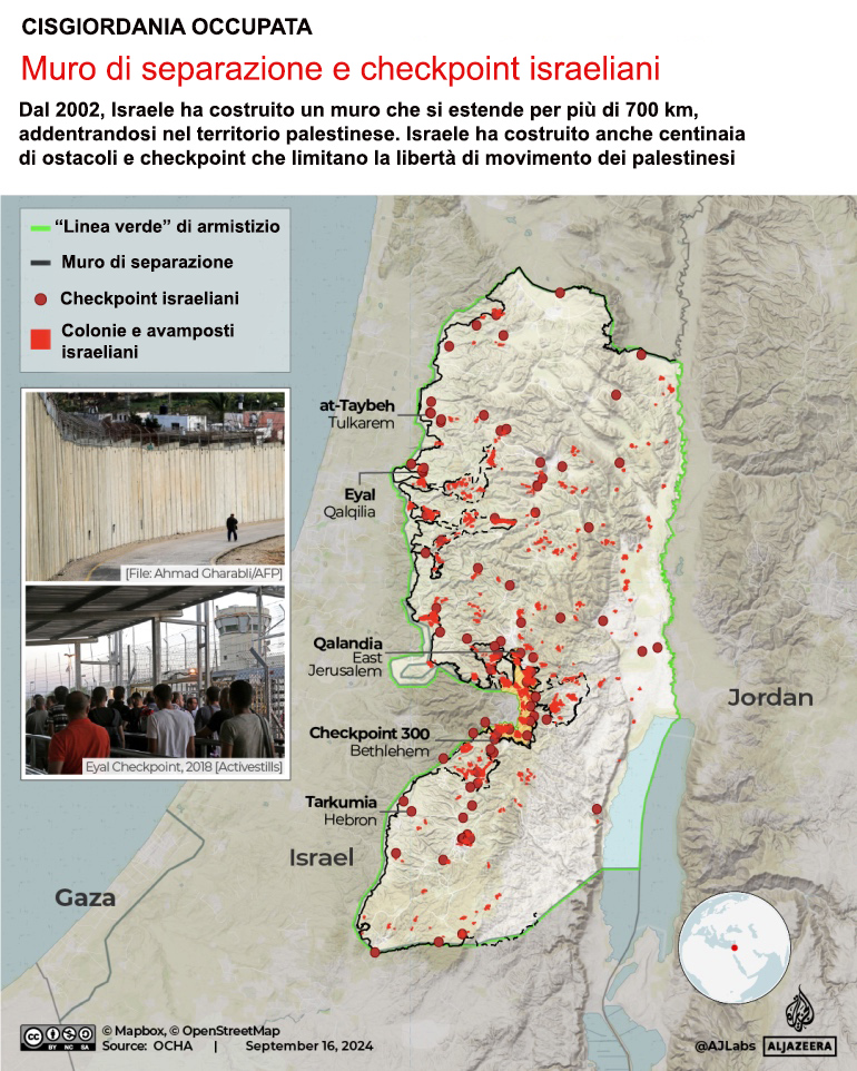 Ora la presenza israeliana in Cisgiordania presenta come barriere militari, insediamenti, strade di circonvallazione, posti di blocco e giurisdizioni degli insediamenti, che intersecano tra le aree palestinesi. L’esercito israeliano continua a operare a suo piacimento in tutte e tre le zone.