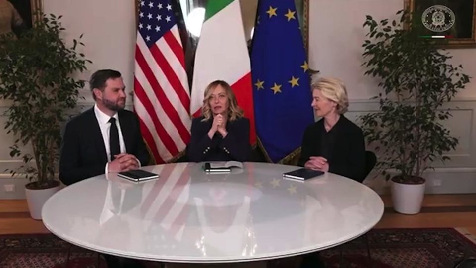 “Voglio ringraziare tutti gli uomini e le donne che hanno lavorato affinché quella di oggi fosse una giornata perfetta, che dà lustro all’Italia e alla sua capacità organizzativa, alla sua capacità di ospitare i propri omologhi”. Così Giorgia Meloni, aprendo l’incontro di lavoro a palazzo Chigi col vicepresidente americano J.D. Vance e la presidente della commissione Ue Ursula von der Leyen.