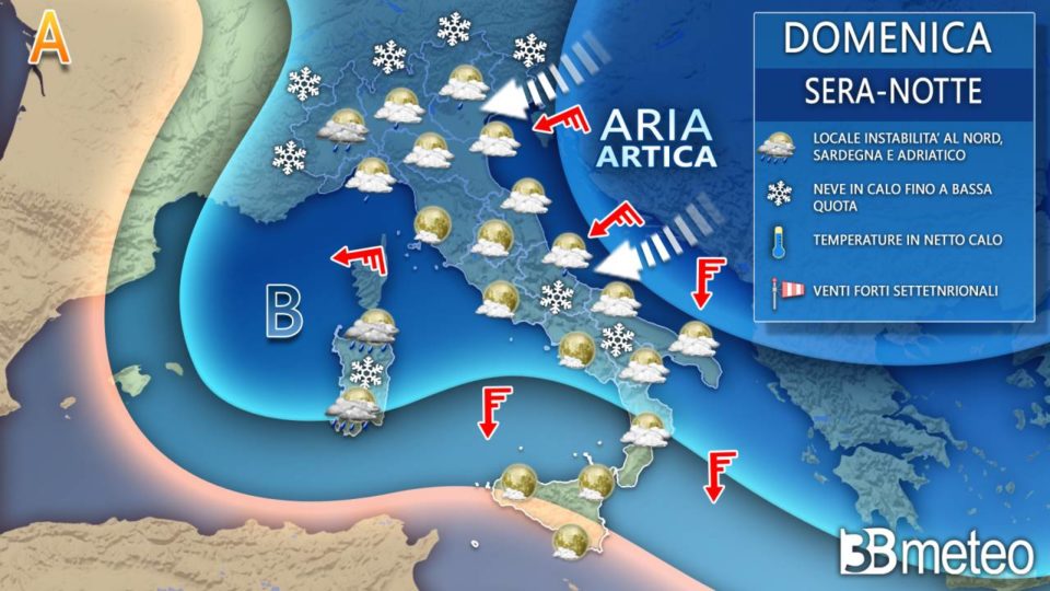 Troveremo, nelle prossime ore, ancora tanto vento al Sud e residui fenomeni tra Puglia e Sicilia; al Nord arriverà la Neve da Stau, poi su tutta l’Italia il termometro scenderà fino a valori invernali per gran parte della settimana.