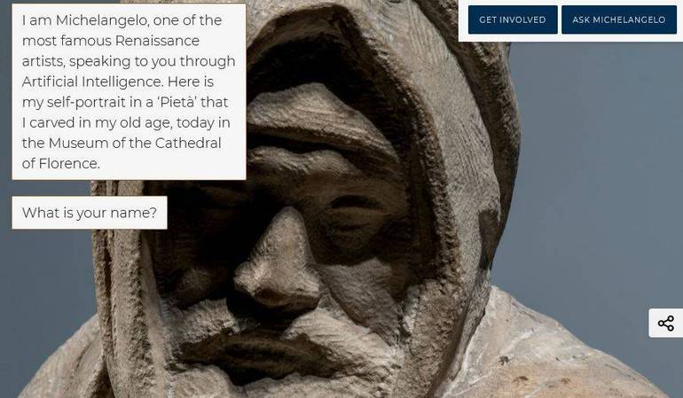 ‘Michelangelo Ai’ è uno strumento educativo alla portata di tutti per conoscere l’arte, la vita e il pensiero del più grande artista del Rinascimento. Allo stesso momento l’artista virtuale imparerà dalle conversazioni implementando costantemente il suo bagaglio di conoscenze.