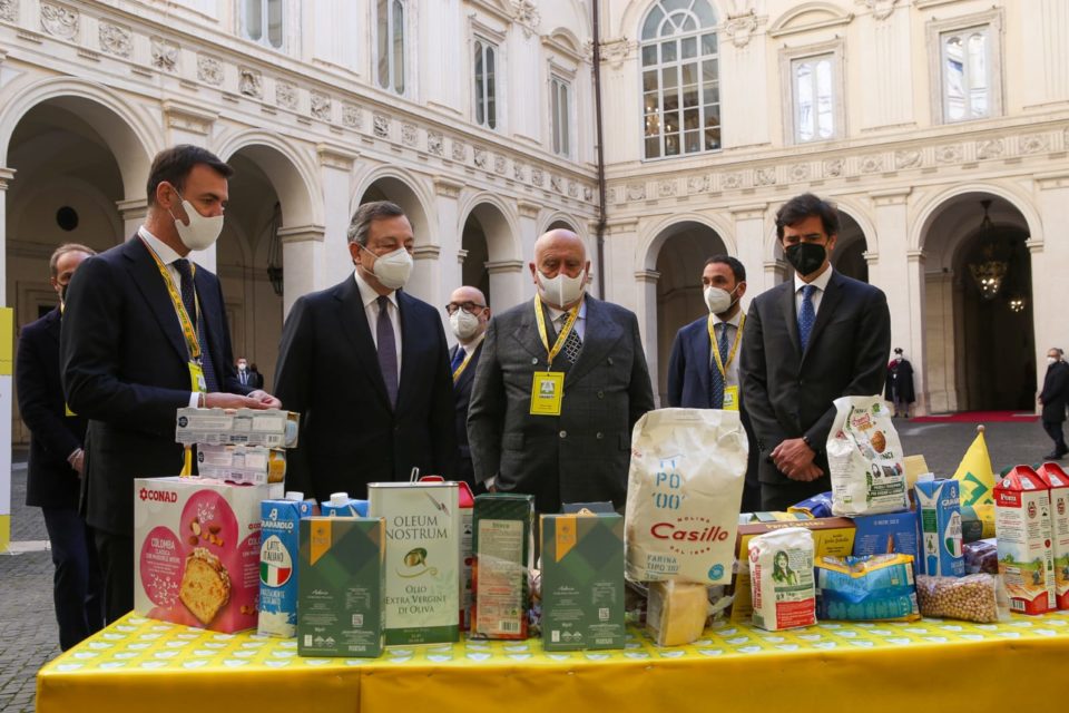 Sono circa ventimila le famiglie povere, gravemente toccate dall’emergenza Covid, che per la settimana di Pasqua e Pasquetta potranno mettere in tavola i migliori prodotti agroalimentari Made in Italy e passare delle feste più serene grazie alla operazione di solidarietà del sistema agroalimentare italiano presentata al premier Mario Draghi dal presidente della Coldiretti, Ettore Prandini e dal segretario generale della Coldiretti Vincenzo Gesmundo. L’iniziativa, promossa da Coldiretti, Filiera Italia e Campagna Amica con la partecipazione delle più rilevanti realtà economiche e sociali del Paese, ha visto la spedizione del primo carico di aiuti alimentari dal cortile di Palazzo Chigi “A sostegno di chi ha più bisogno”. “Abbiamo voluto dare un segno tangibile della solidarietà della filiera agroalimentare italiana verso le fasce più deboli della popolazione più colpite dalle difficoltà economiche”, ha spiegato il presidente della Coldiretti Ettore Prandini nel sottolineare che “il nostro obiettivo è far sì che questa esperienza diventi un impegno strutturale che aggiunge valore etico alla spesa quotidiana degli italiani”. Decine di mezzi sono stati organizzati per le consegne lungo tutta la Penisola per procedere poi alla distribuzione a nuclei familiari in stato di bisogno individuati da Coldiretti/Campagna Amica insieme ai servizi sociali dei comuni e alle parrocchie. Ogni famiglia è destinataria di un pacco di oltre 50 chili con prodotti 100% Made in Italy come – spiega Coldiretti – pasta e riso, Parmigiano Reggiano e Grana Padano, biscotti, sughi, salsa di pomodoro, tonno sott’olio, dolci e colombe pasquali, stinchi, cotechini e prosciutti, carne, latte, panna da cucina, zucchero, olio extra vergine di oliva, legumi e formaggi fra caciotte e pecorino. Un’operazione che, spiega in una nota la Coldiretti, vuole essere un segnale di speranza per il Paese e per tutti coloro che in questi mesi hanno pagato più di altri le conseguenze economiche e sociali dell’emergenza Covid. Ma anche evidenziare le grandi eccellenze del Paese che hanno contribuito a fare grande il Made in Italy in Italia e all’estero e rappresentano un risorsa determinante da cui ripartire.