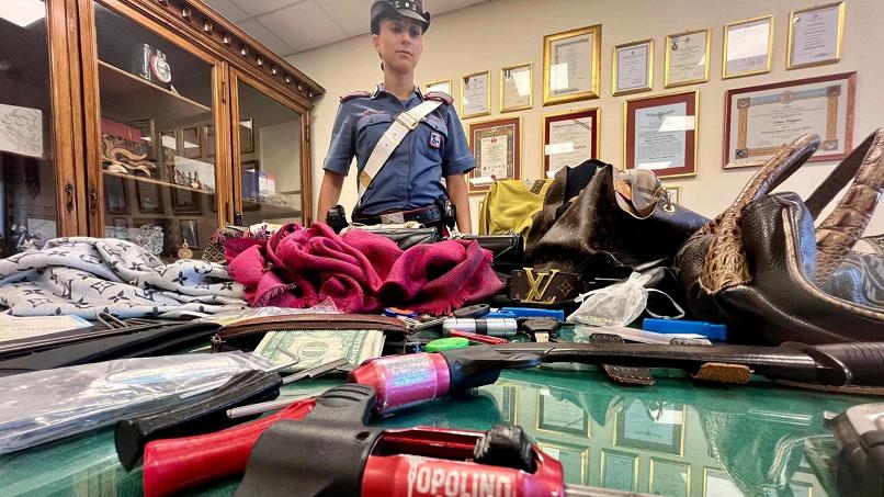 Parte della refurtiva è stata riconosciuta come provento di un furto in abitazione in via Cremona a Roma e denunciato dalla proprietaria presso il Comando Stazione Carabinieri Roma Piazza Bologna, a cui è già stata restituita.