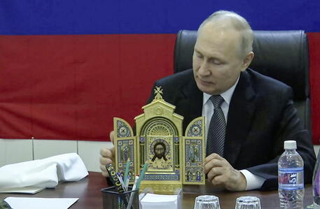 Il presidente russo, Vladimir Putin, nella sua visita a sorpresa alle truppe impegnate nelle regioni ucraine di Kherson e Lugansk ha fatto ai soldati gli auguri per la Pasqua ortodossa, celebrata la scorsa domenica 16 aprile, e regalato icone. Ai comandanti del gruppo Dnepr, di stanza nella regione di Kherson – dove il leader del Cremlino si è recato in elicottero – Putin regalato una copia dell’icona, che “apparteneva a uno dei ministri della Difesa di maggior successo dell’Impero russo”. Il presidente ha aperto e mostrato l’icona, come si vede da un video pubblicato dall’agenzia ufficiale Ria Novosti.