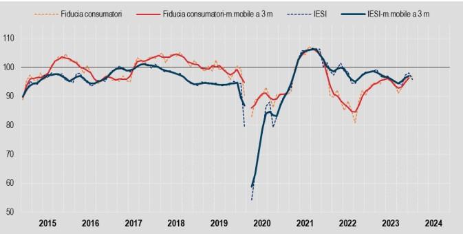 Tra i consumatori, si evidenzia un diffuso miglioramento delle opinioni soprattutto sulla situazione economica generale e su quella futura: il clima economico aumenta da 96,1 a 101,3 e quello futuro cresce da 93,3 a 96,1; l’incremento è meno marcato per il clima personale (l’indice sale da 96,4 a 97,1) e per quello corrente (da 98,6 a 99,8).