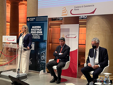 Un percorso di confronto che oggi approda al Tempio di Vibia Sabina e Adriano, sede della Camera di Commercio di Roma, dove l’assessora alla Transizione Ecologica e Trasformazione Digitale, Roberta Lombardi, insieme con l’assessore allo Sviluppo Economico, Paolo Orneli, presenta il documento programmatico aggiornato e approvato alle attività produttive della Capitale dopo i saluti iniziati del Presidente della Camera di Commercio di Roma, Lorenzo Tagliavanti. “Oggi viene adottata ufficialmente la nuova Agenda Digitale del Lazio 2022-2026 cui abbiamo dato lo stesso orizzonte programmatico degli investimenti del PNRR proprio per il ruolo cruciale che avrà la digitalizzazione nella prossima stagione di investimenti – dichiara l’assessora alla Transizione Ecologica e Trasformazione Digitale, Roberta Lombardi – Sono orgogliosa di poter presentare alle imprese di Roma un documento frutto di un percorso partecipato, in presenza e on line, rivolto a tre principali categorie di destinatari – cittadini, imprese ed Enti Locali – che si sono espresse sulle cinque macro-aree strategiche e di azione dell’Agenda Digitale: 1. Infrastrutture abilitanti; 2. Cybersecurity; 3. Cultura digitale e competenze digitali delle persone; 4. Accessibilità alla tecnologia; 5. Design dei servizi e delle relazioni: fruibilità dei servizi e semplificazione dei processi”. “Tanti i contributi arrivati, anche molto dettagliati: dallo sviluppo di Mini Fablab per il sociale e l’innovazione nei piccoli Comuni e quartieri periferici all’elaborazione di un piano didattico formativo, tra le altre cose anche sui temi della cybersecurity, per il personale della PA, condiviso con gli enti locali. E ancora: percorsi di formazione per lo sviluppo di competenze digitali dei docenti delle scuole e iniziative, per studenti e studentesse di ogni ordine e grado, volte ad accrescere l’interesse nelle discipline STEM, come ad esempio i campi estivi; utilizzare luoghi di aggregazione per gli anziani presenti sul territorio come punti di facilitazione digitali; una cartografia ‘arricchita’, una mappa del territorio con i punti di rilievo segnalati (aree di attrazione turistica e siti archeologici, biblioteche, cinema, musei, centri culturali, etc.), al fine di permettere una migliore fruizione del patrimonio naturale, culturale e turistico regionale; coinvolgimento dei medici del Servizio Sanitario Nazionale nelle attività di promozione e sensibilizzazione dei servizi di telemedicina attivati dalla Regione, quali teleconsulto, televisita, telemonitoraggio, teleassistenza e del Fascicolo Sanitario Elettronico. Insomma una varietà di contributi che ci ricorda che è fondamentale avere un approccio integrato e omnicomprensivo per la trasformazione digitale”, dichiara Lombardi. “Con la nuova Agenda Digitale del Lazio aggiungiamo un altro tassello fondamentale verso la costruzione di un modello di sviluppo futuro più inclusivo e sostenibile. La programmazione di fondi europei 2021-2027 offre risorse che daranno concretezza a moltissime delle azioni individuate dalla strategia, capitalizzando le esperienze già fatte con le quali le imprese del Lazio sono state accompagnate nella transizione digitale raggiungendo risultati importanti. Mi riferisco, per esempio, ai bandi Voucher Digitali, grazie ai quali abbiamo sostenuto il percorso di digital transformation delle imprese laziali, impegnando 10 milioni euro e finanziando circa 1200 progetti. Le abbiamo assistite istruendo manager e dipendenti verso processi innovativi digitali, migliorando le loro competenze e aiutandoli a individuare gli interventi necessari ad affrontare le nuove sfide del mercato. Stiamo creando un circolo virtuoso che, non solo farà ripartire la nostra Regione rendendola sempre più la Regione dell’Innovazione, ma sosterrà una nuova idea di sviluppo, innovativa e inclusiva allo stesso tempo, che non lascerà indietro nessuno” ha dichiarato Paolo Orneli, assessore regionale allo Sviluppo Economico. Tra gli obiettivi principali dell’Agenda Digitale da raggiungere entro il 2026: colmare il gap digitale, rendendo digitalmente abile almeno il 70% della popolazione; raddoppiare la popolazione in possesso di competenze digitali avanzate; incrementare del 50% la quota delle micro, piccole e medie imprese che utilizzano specialisti ICT; raggiungere almeno il 65% di popolazione che utilizza servizi pubblici digitali; elevare all’80% la percentuale di popolazione che utilizza Internet.
