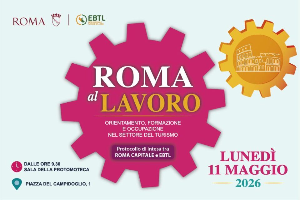 Lunedì 11 maggio, dalle ore 9.30, presso la sala Protomoteca del Campidoglio, si terrà l’iniziativa “Roma al Lavoro – Orientamento, Formazione e Occupazione nel settore del Turismo” organizzata dall’Assessorato alla Scuola, Formazione e Lavoro e dall’Ente Bilaterale del Turismo del Lazio (EBTL). Durante l’iniziativa, aperta a sindacati, organizzazioni datoriali, imprese e operatori del turismo e servizi collegati, e a tutti i soggetti interessati, saranno anche presentati i dati di importanti ricerche svolte in collaborazione con l’Università degli Studi di Roma Tre su mercato del lavoro, formazione e professioni predittive del Settore. L’evento sarà inoltre l’occasione per discutere del turismo come motore di sviluppo economico, occupazionale e sociale per la città. A conclusione dell’evento, si procederà alla firma del Protocollo d’intesa tra l’Assessorato alla Scuola, Formazione e Lavoro di Roma Capitale e l’Ente Bilaterale del Turismo del Lazio.
