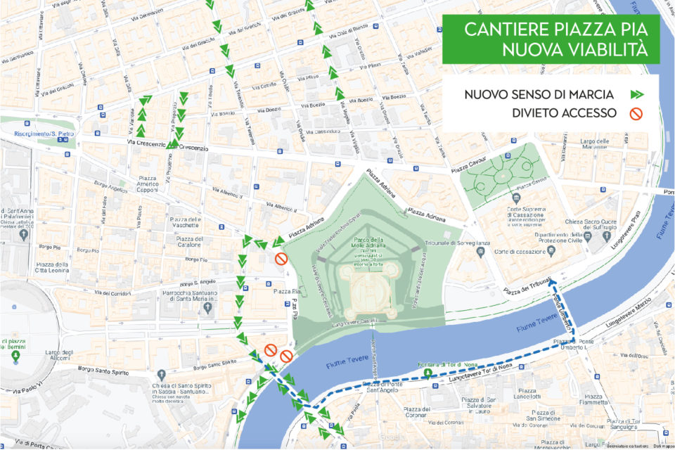 In vista della riapertura delle scuole si stanno inviando agli istituti scolastici situati nelle zone di Piazza Pia e Ponte dell’Industria (interessati dai lavori per le opere dell’anno giubilare) le mappe con la nuova circolazione in quelle aree.