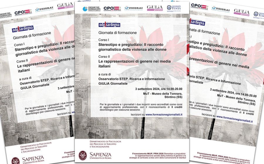 Il primo seminario, dal titolo ‘Stereotipo e pregiudizio: Il racconto giornalistico della violenza alle donne’, è in programma dalle 14 alle 17:30 e sarà moderato da Maria Francesca Fantato, del direttivo dell’Associazione NoiDonne2005. I saluti iniziali saranno di Rita Vallebella (sindaca di Stintino), Esmeralda Ughi (direttrice del Museo della Tonnara), Flaminia Saccà (presidente dell’Osservatorio Step – Ricerca e Informazione), Serena Bersani (presidente GiULiA Giornaliste) e Simonetta Selloni (presidente Associazione stampa Sarda). Le relazioni saranno a cura di Flaminia Saccà (Sapienza Università di Roma e Presidente dell’Osservatorio Step), Silvia Garambois (già Presidente GiULiA e cabina di regia Osservatorio), Fabrizia Giuliani (Sapienza Università di Roma e Ricercatrice Senior dell’Osservatorio Step), Luca Massidda (Università degli Studi della Tuscia e Ricercatore Senior dell’Osservatorio Step), Rosalba Belmonte (Università della Tuscia, Ricercatrice dell’Osservatorio Step) e Lucia Pelle (Sapienza Università di Roma).