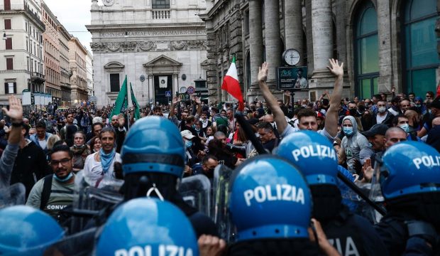 Corradetti – si ricorda – è figlio della compagna del leader romano di Forza Nuova, Giuliano Castellino. Nella ricostruzione il tribunale spiega che in occasione dell’arresto di ques’ultimo “gli operanti venivano aggrediti dal gruppo di manifestanti che si trovava accanto” a Castellino “tra i quali vi era il·Corradetti che si scaraventava contro la Polizia con calci e pugni”. A quel punto è stato bloccato e arrestato Corradetti. “Ad un certo punto, intorno alle 15.30, alcune migliaia di manifestanti decidevano di lasciare Piazza del Popolo – spiegano i giudici – per raggiungere Piazzale del Brasile con l’intento di raggiungere la sede Cgil a Corso d’Italia che, nonostante il servizio d’ordine predisposto dalla Polizia, veniva assaltata con il compimento di atti vandalici”. In contemporanea “altri manifestanti esercitavano violenza contro le Forze dell’ordine poste in sbarramento e a tutela del Tridente al fine di evitare l’accesso ai palazzi istituzionali. Circa 1.500 persone si erano infatti dirette verso Via Veneto ed altre verso Via del Tritone, in prossimità di Largo Chigi”. Poi si afferma che in “più occasioni, durante lo spostamento dei gruppi dei manifestanti provenienti da più parti, ma tutti convergenti verso Palazzo Chigi, si erano verificati dei momenti di tensione tra questi ultimi e la polizia i cui schieramenti erano stati colpiti più voite da lanci di bottiglie e oggetti tanto da richiedere l’impiego di idranti e di lacrimogeni”.